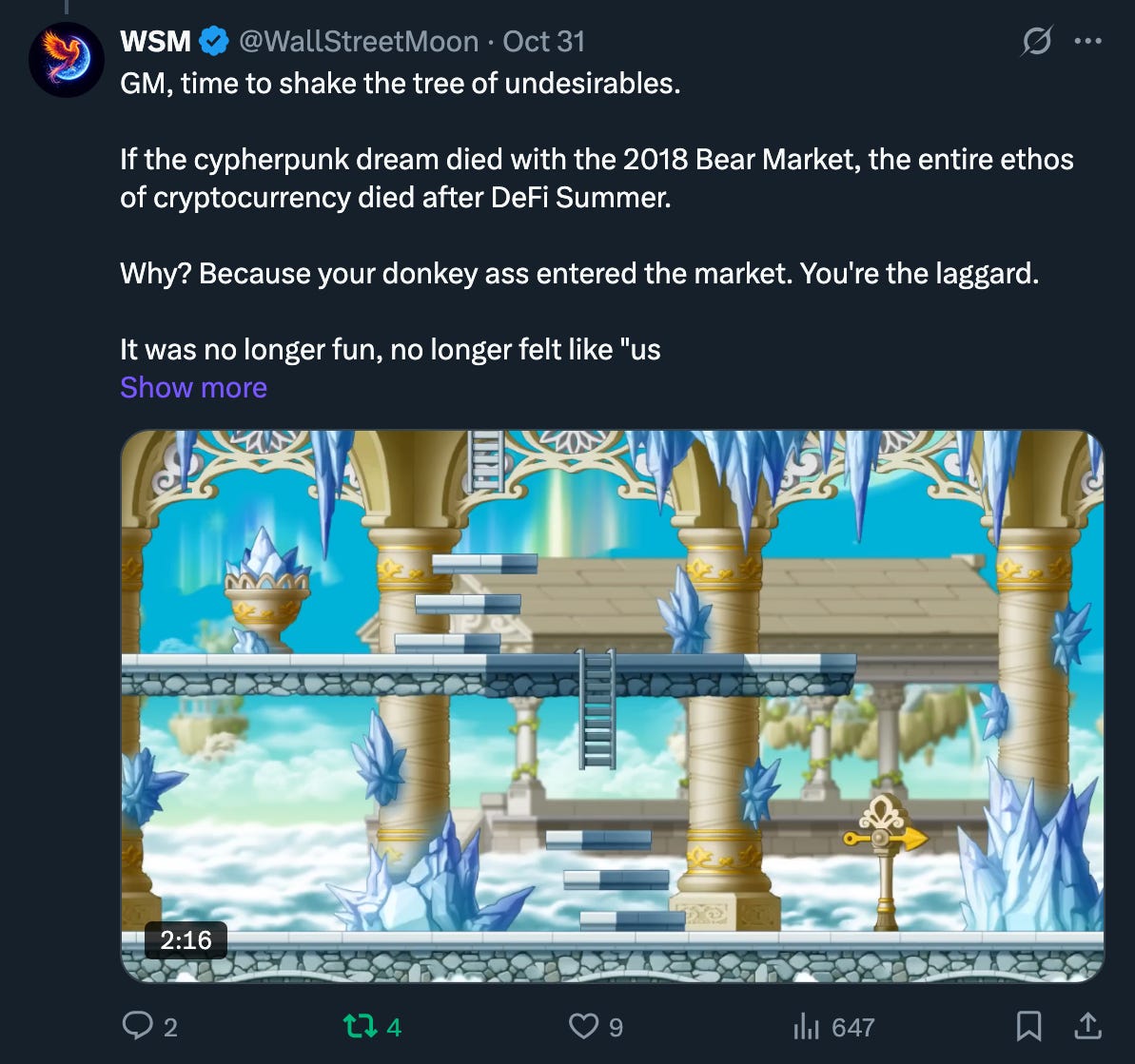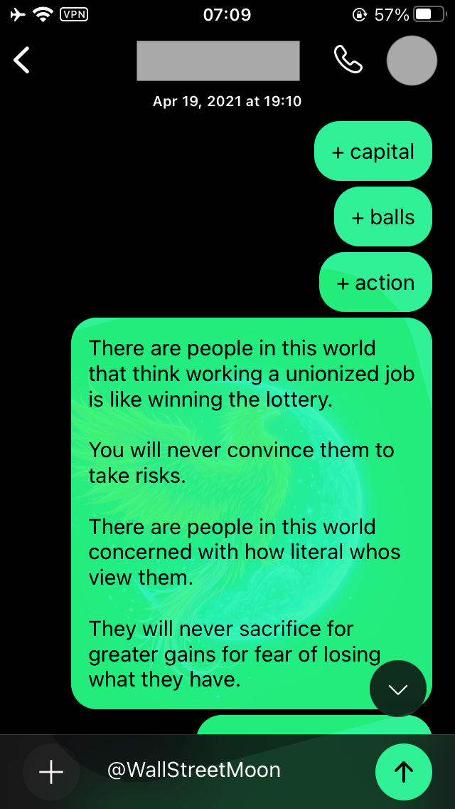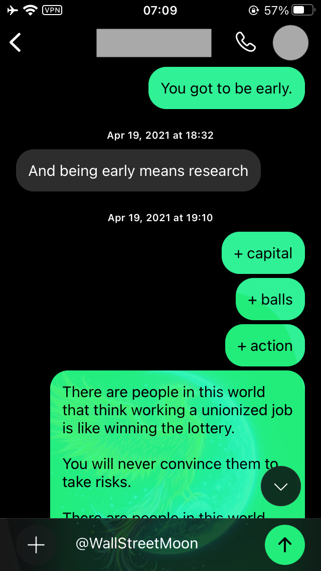 If anything I say resonates with you, you can follow me @WallStreetMoon on Twitter. I’m gathering a small holder set for a launch that cuts deep, and have zero plans to donkey donkey on Twitter outside of that. I prefer people who make the effort to dig through my posts.