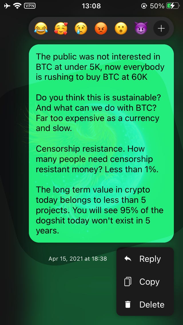 It’s not the same place as it once was, so this is why I won’t name it. But I spent most of my time elsewhere which allowed me to develop a natural edge over the majority of Crypto Twitter. In this distant land, everybody was naturally competitive rather than “muh community”, so it shaped you to be a better investor.