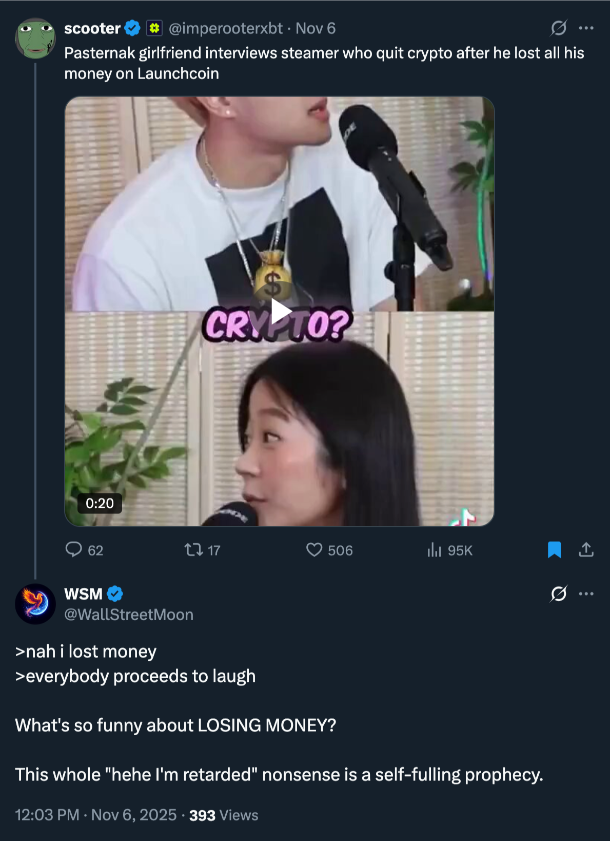 Here’s how I feel about you donkeys scamming and rugging each other in 2025 for peanuts: