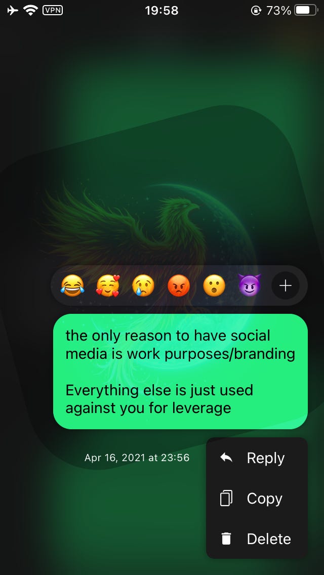 If you align with me, and are someone with grit that doesn’t require spoonfeeding: dig through my posts, there’s something there. I’m looking for a certain quality of user to join me.