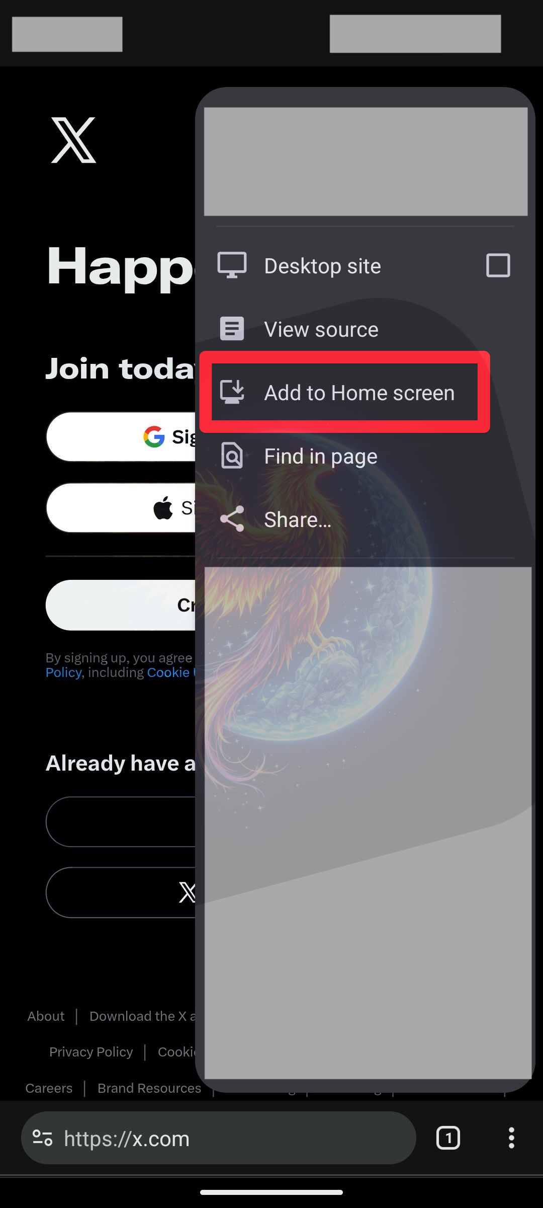 Visit Twitter in Google Chrome, then click the Three Vertical Dots → Add to Home screen.